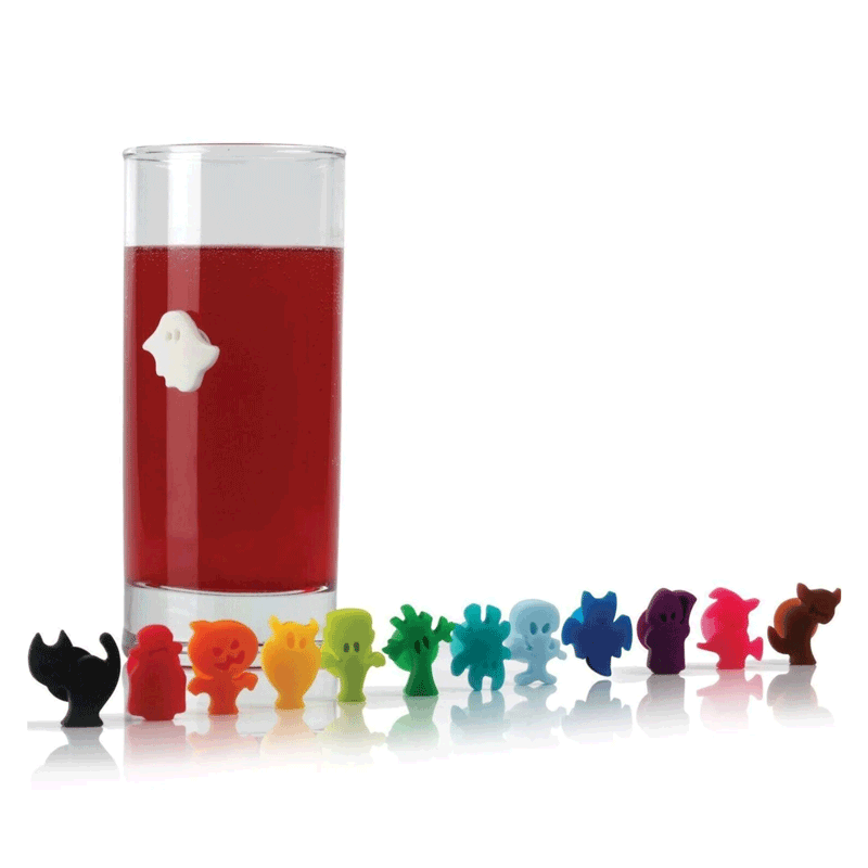 Zestaw zawiera 13 unikalnych znaczników w kształcie postaci związanych z motywem Halloween, zróżnicowanych pod względem formy i koloru. Każdy znacznik wyposażony jest w przyssawkę, która umożliwia mocowanie do gładkich powierzchni, takich jak szkło czy butelka.