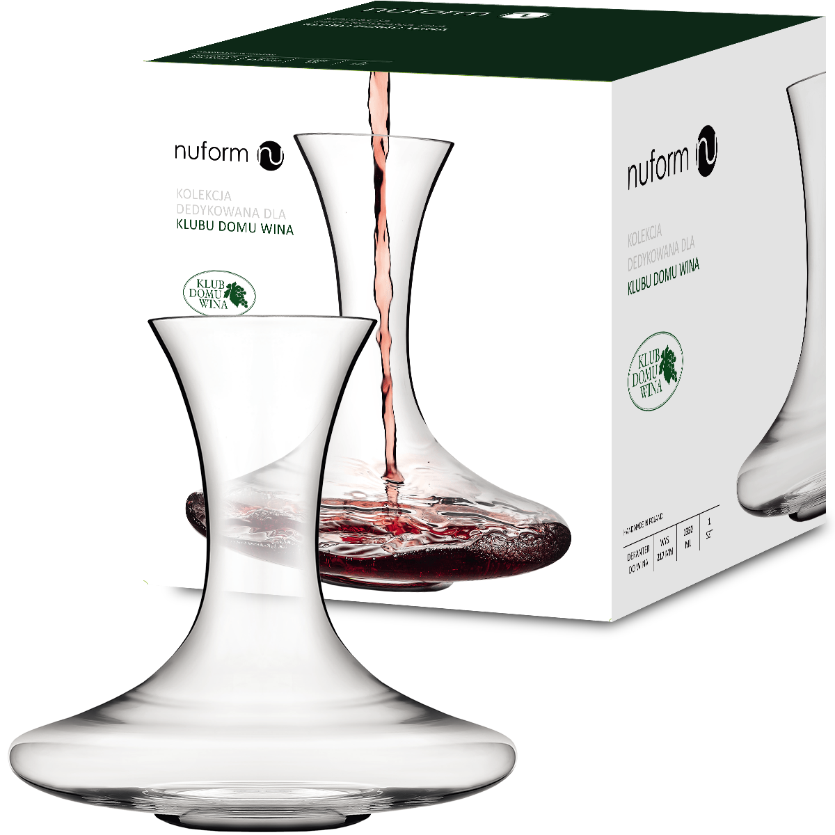 Nuform to kolekcja szkła użytkowego o prostej, nowoczesnej formie przeznaczona dla pasjonatów i wielbicieli wina. Dekanter Nuform o pojemności 1,35l został wykonany ręcznie ze szkła najwyższej jakości. Klasyczna forma karafki pozwala na wygodne nalewanie z butelki i podawanie wina.