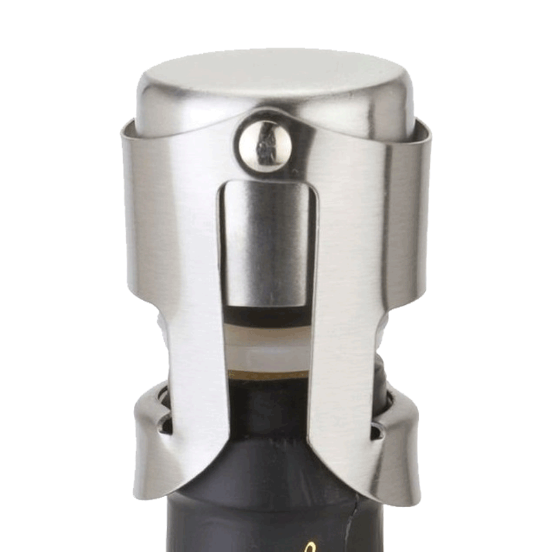 Stoper próżniowy wykonany z wysokogatunkowej stali nierdzewnej. Zachowuje pełne właściwości napoju po otwarciu. System blokady ciśnieniowej zapobiega ulatnianiu się CO2.