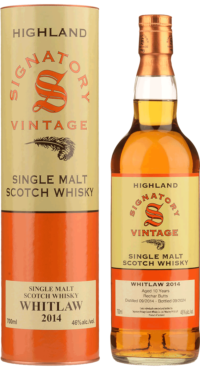 Whisky Whitlaw 10 YO z serii Signatory Vintage to wyjątkowa whisky słodowa wykreowana przez Signatory z pojedynczych, specjalnych beczek – w tym z rzadkich partii pochodzących z zamkniętych destylarni. Cechuje się subtelnym aromatem przywodzącym na myśl dym torfowy w połączeniu z nutą korzennego miodu wrzosowego. Na podniebieniu pełna, miękka, ale i pikantna, o smaku naznaczonym wyraźnymi nutami wrzosu i świeżych ziół; w tle pojawiają się lekko owocowe akcenty suszonych owoców, delikatnego toffi, dojrzałych czerwonych jagód i soczystych rodzynek, a nad wszystkim unosi się słodki dym torfowy. Całość wieńczy średnio długi, owocowo-korzenny finisz.